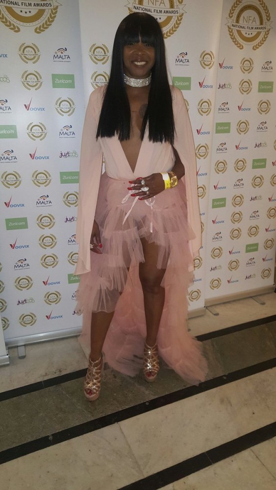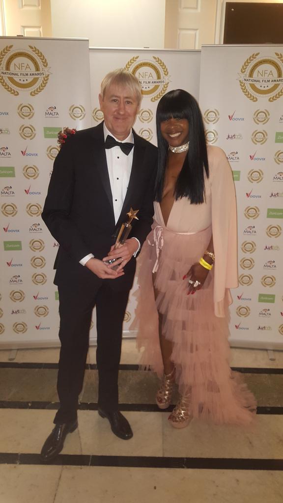 Британская телезвезда и певица Сэнди Богл пришла на церемонию награждения National Film Awards в Лондоне в откровенном розовом платье с огромным декольте.