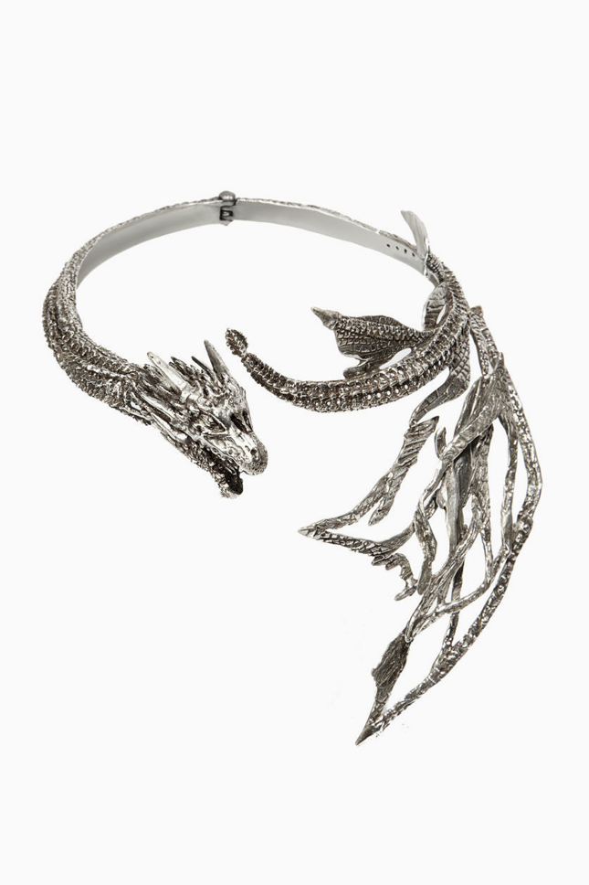 Ее основным лейтмотивом стали ювелирные изделия в стиле «Матерь драконов» – Дайнерис Таргариен: кольца, кулоны, серьги и ожерелья в виде драконов.