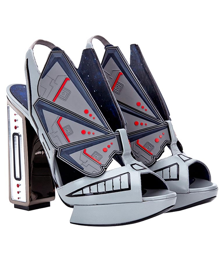 «Назад в будущее», PacMan, «Звездные войны» и другие лучшие образы нашли свое воплощение в линейке экстравагантной обуви. Некоторые модные критики назвали необычную коллекцию данью ультрамодной культуре гиков.