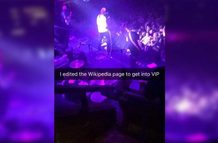 Об этой схеме проникновения на концерт парень рассказал на своей страничке в социальной сети: «Вчера вечером мы попали на концерт, но приехали слишком поздно и почти не видели сцену. Я был пьян, отредактировал страницу группы в Википедии, где указал, что я член семьи – и это сработало!»