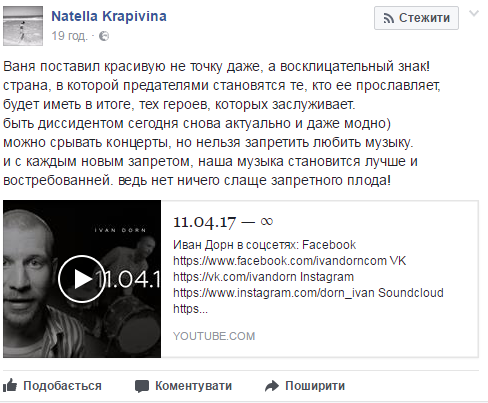 Продюсер Светланы Лободы Нателла Крапивина восхитилась стихотворением Ивана Дорна об украинском паспорте. Она поделилась собственным мнением в Facebook.