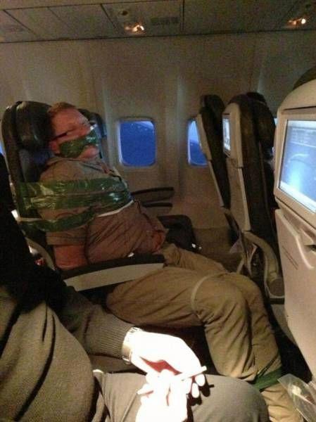 В самолетах можно встретить немало чудаков. Кто-то везет с собой резиновую женщину, кто-то в буквальном смысле слова садиться на шею соседу, кому-то мешают смотреть фильм длинные волосы незнакомки на экране монитора, а некоторые даже восседают на своем кресле, примотанные скотчем для надежности, ведь турбулентность – штука непредсказуемая.