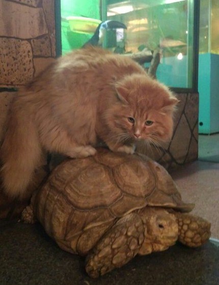 Сначала пара шпороносных черепах Шрек и Фиона разбила стекло своего вольера (они сделали это панцирями и не порезались). Одному из владельцев зоопарка Вадиму Ивушкину пришлось сесть на черепаху (судя по всему, на Шрека), чтобы удержать ее.