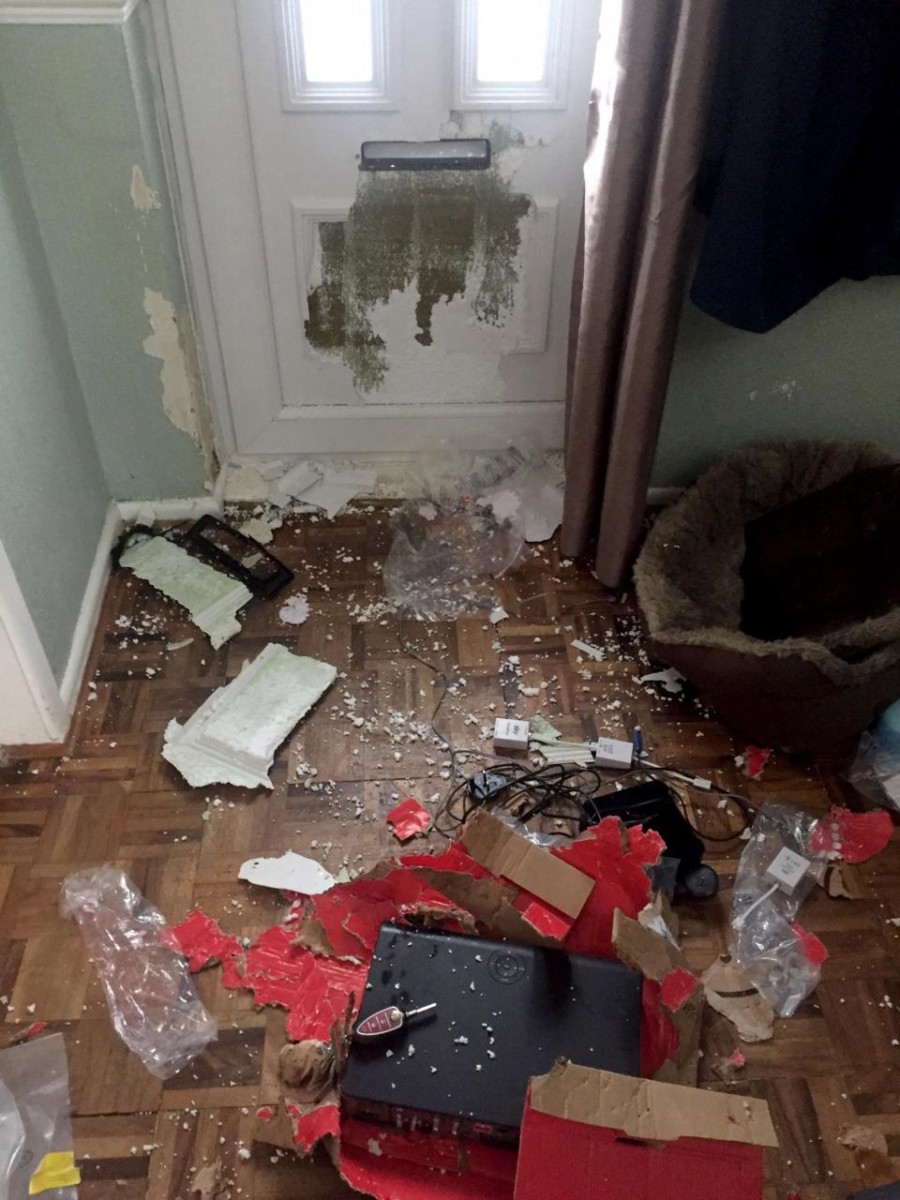 Собака буквально разорвала входную дверь с внутренней стороны, опрокинула и разувала коробку от телевизора, где находился товар для возврата, а также разорвала бокс с новыми игрушками. Ничего подобного Бобби раньше не делал. Ущерб от его действий хозяева оценили в 2000 долларов.