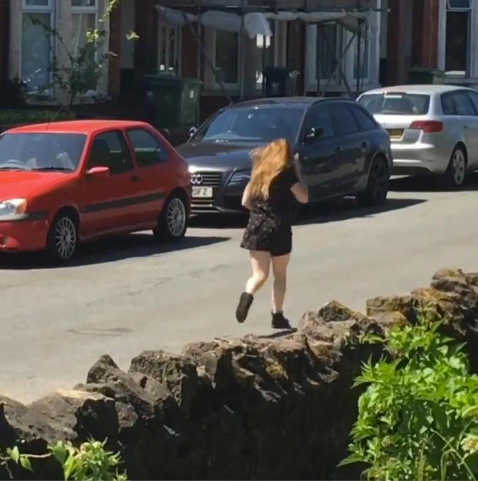 Необычное зрелище удалось снять очевидцу – 21-летнему Бену Тейлору. По его словам, злоумышленница ушла прочь, размахивая металлическим штырем, а через пару минут после ее исчезновения прибыли полицейские.