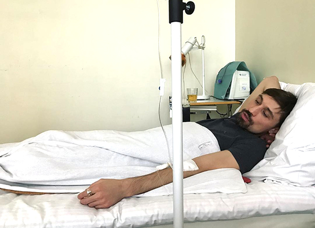«Ура-ура, бронхит (первый раз так радуюсь болезни)! Болезнь поймала за хвост, ещё немного и перевалило бы в пневмонию!!!!!…» Также он отметил, что врачи принимают все необходимые меры по выздоровлению. На больничной койке ему придётся провести несколько дней. Температура у музыканта достигает 38,4 градусов.