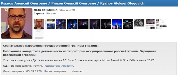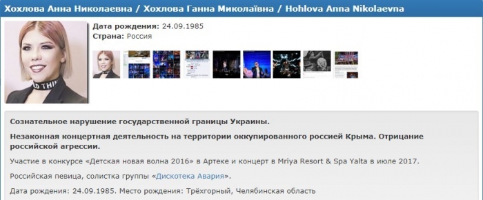 В частности музыкантам «Аварии» Алексею Рыжову, Алексею Серову и вокалистке Анне Хохловой предъявляют обвинение в выступлениях на территории аннексированного Крыма. Кроме того эти артисты отрицали агрессию России по отношению к Украине.