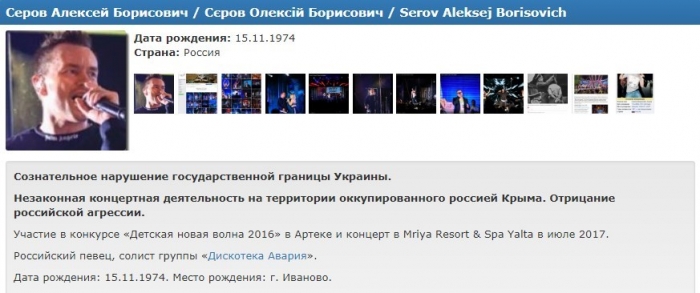 Также недавно список преступников «Миротворца» пополнился Сергеем Дружко, чья песня «Наш Крым» была расценена как «открытое оправдание российской агрессии».