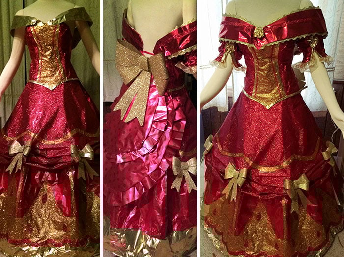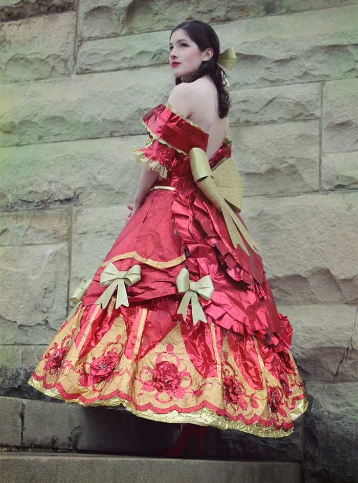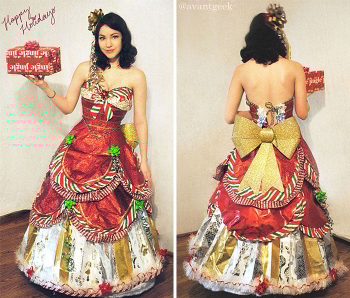 Дизайнер делает шикарные платья из упаковок новогодних подарков. Вы только посмотрите