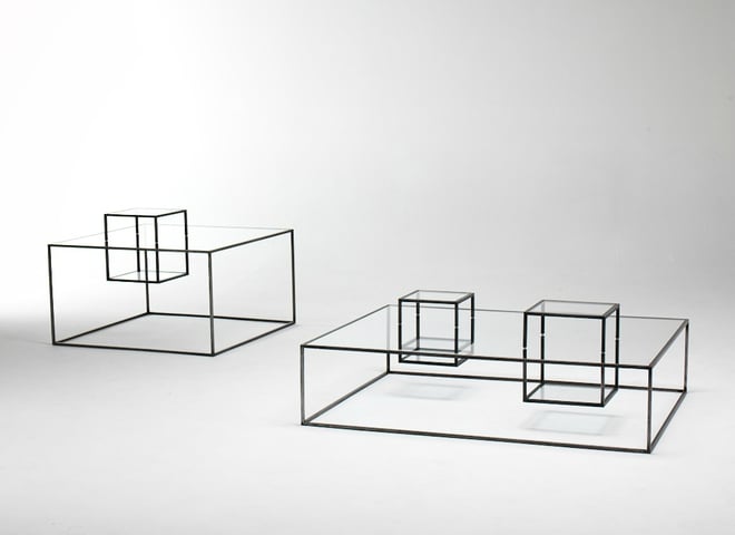 Вдохновившись невозможным кубом Эшера, промышленный дизайнер Себастьяно Тоси (Sebastiano Tosi) разработал для бренда Mogg серию столиков Illusioni. Простой металлический каркас черного цвета и прозрачное стекло позволили создать иллюзию того, что кубы плавают в невесомости.