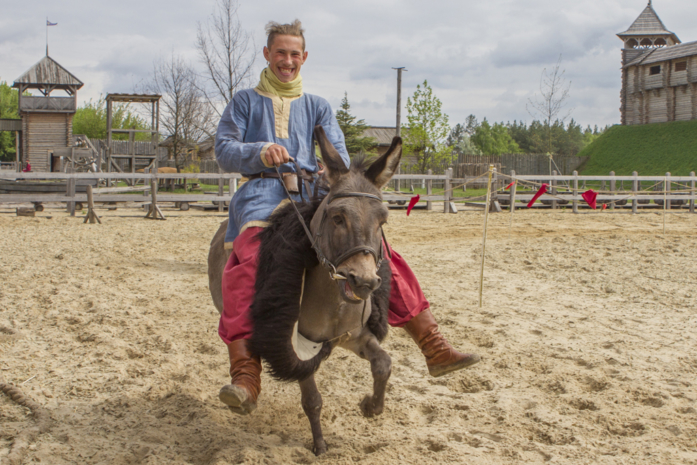 В программе выступления конно-трюкового театра, которые будут показаны с юмором: строевая подготовка конной дружины, презентация исторических пород лошадей из Княжеской конюшни. Но самым веселым станет театрализованный номер «Малый Бабский Батальон». Верхом на лошадях выступят исключительно представительницы прекрасного пола. Также гости Парка увидят шуточную битву скоморохов и даже выступление дрессированного пони в роли льва. Но будут в программе и вполне серьезные развлечения – соревнования конных лучников.