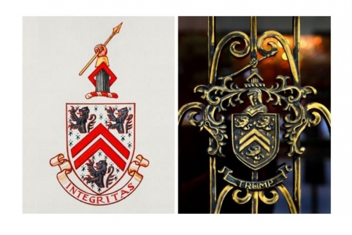 Единственное различие между гербом Дэвиса и Трампа – это надпись на ленте внизу. В первоначальном варианте значится надпись латинским «Integritas». А у Трампа – его фамилия.