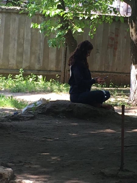 «Она очень клевая, ходит босиком везде, не только по земле, но и по условно чистым полам внутри помещений, легко соглашается на селфи со всеми и на общение, полное отсутствие пафоса, кушала сидя по-турецки на земле в одном из краматорских дворов, улыбаясь проходящим мимо людей и приветствуя их «Hello, I’m Ashley», — написала Каракуц.