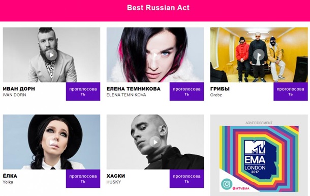 Украинский музыкант Иван Дорн и группа «Грибы» номинированы на премию MTV Europe Music Awards, как российские исполнители.