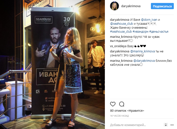 Иван Дорн, которого исключили из списка артистов-хедлайнеров масштабного фестиваля Atlas Weekend, отправился в российский курортный Геленджик. Об этом стало известно из соцсетей, где появились фотодоказательства концерта украинского певца в местном клубе Sea House.