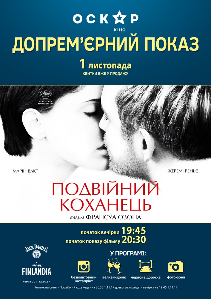 На экранах сети кинотеатров «Оскар» фильм «Двуличный любовник» стартует с 02 ноября.