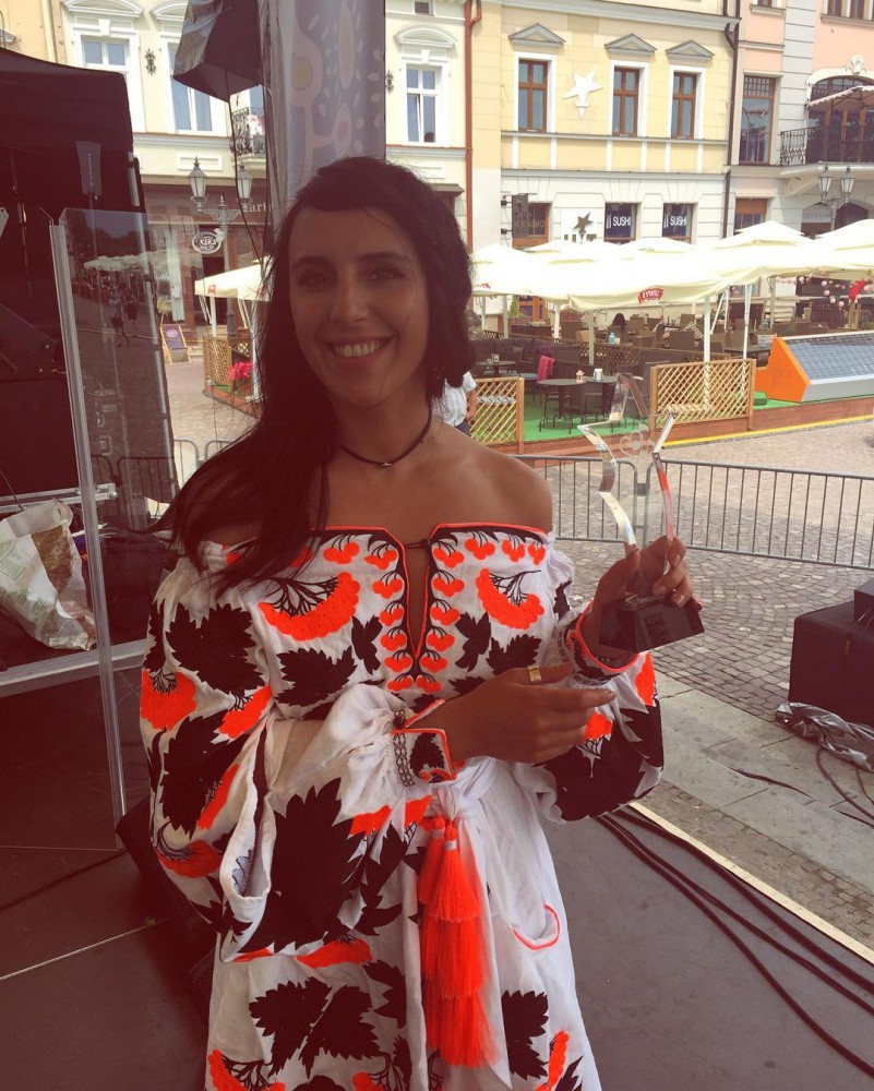 Победительница «Евровидения-2016» Джамала выбрала платье в украинском стиле с оригинальным узором гроздей калины от Юлии Магдыч для недавнего выступления в польском городе Жешув, где удостоилась награды OGAE (некоммерческая организация, которая объединяет фанатов конкурса Евровидение более 40 стран).