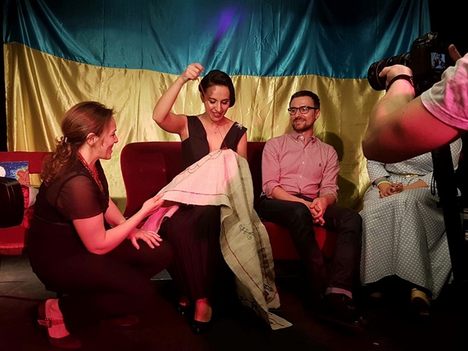 Артистка получила в дар традиционные украинские обереги: куклу-мотанку и вышитый рушник. Также поклонники творчества исполнительницы подарили ей цветы и книги. Джамала и сама решила показать, что любит рукоделие и чтит украинские традиции. Прямо на глазах у собравшихся она вышила небольшой фрагмент рушника.