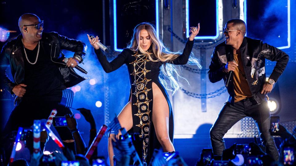 47-летняя Дженнифер Лопес приняла участие в съемке концерта. Ее сценические наряды заставили поклонников поволноваться Она сменила сразу два откровенны костюма.
