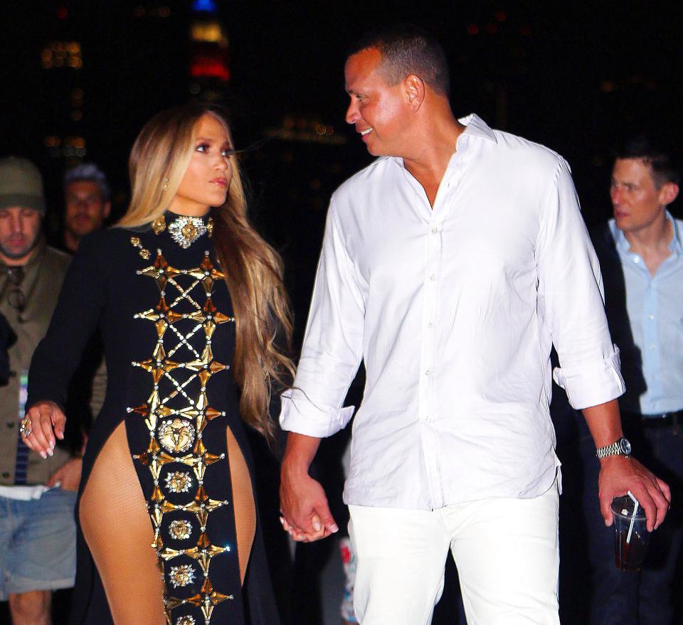 Джей Ло предстала перед фанами в белом купальнике, усыпанном стразами, сетчатых колготках и замшевых ботфортах. Потом она переоделась в супер откровенное платье, под которым не было белья. В таком наряде после съемок она отправилась на свидание со своим новым бойфрендом Алексом Родригесом, от которого знаменитость просто без ума.