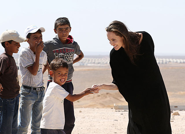 Во время встречи с беженцами и их детьми в городе Азрак актрису окружили дети. Она даже прервала выступление, чтобы познакомиться с подбежавшим к ней мальчиком.