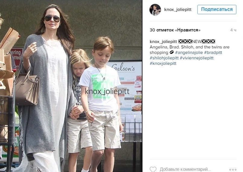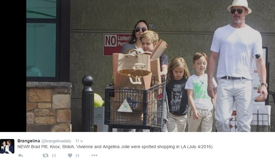 В продуктовый магазин Анджелина и Брэд отправились вместе с детьми – 10-летней дочерью Шайло и 7-летними близнецами Ноксом и Вивьен.