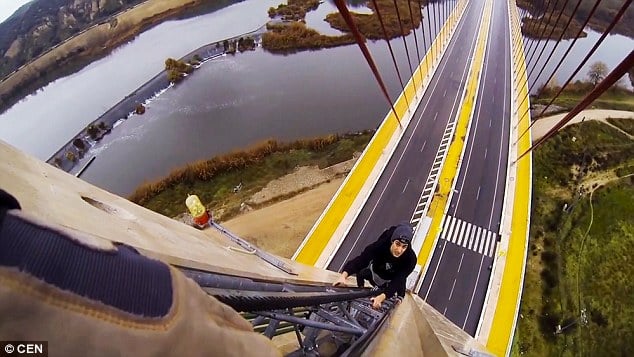 Трое экстремалов из команды под назваением «Spider-Kids» забрались на самый высокий мост в Испании — 183 метра. Об этом сообщает издание Daily Mail.