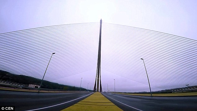 Вначале видео смельчаки показали, как выглядит этот мост с земли.