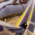 Особенностью этого шага парней есть даже не высота моста, а то, что они забрались туда без какой-либо страховки. Захватывающая панорама снята на камеру GoPro.