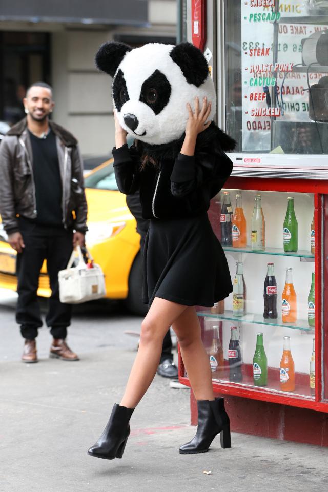 25-летняя актриса и модель Эмили Ратажковски в понедельник в районе Сохо засветилась на улице с головой панды. Оказалось, что звезда просто снималась для рекламы DKNY.