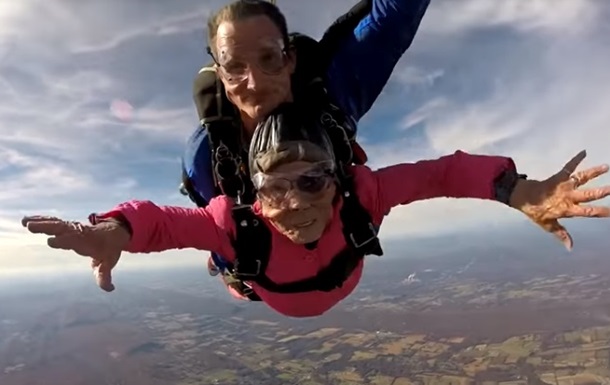 В США 94-летняя женщина Элла Кэмпбелл отпраздновала свой день рождения прыжком с парашютом. Помог ей совершить прыжок инструктор, который сопровождал ее все время. Видео полета женщины было обнародовано на YouTube-канале Above the Poconos Skydivers.