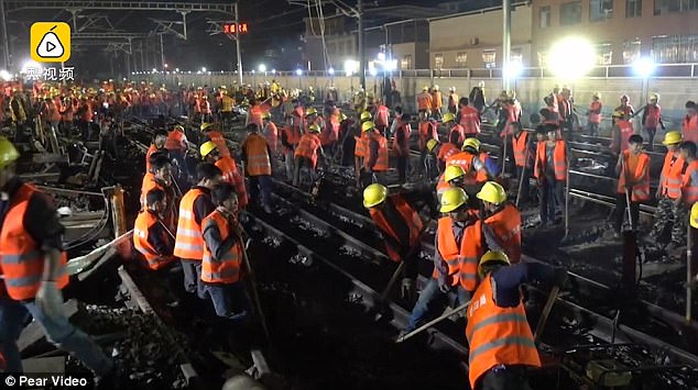 В городе Лунъянь на юге страны рабочие построили железнодорожную развязку для нового вокзала Наньлун всего за девять часов.