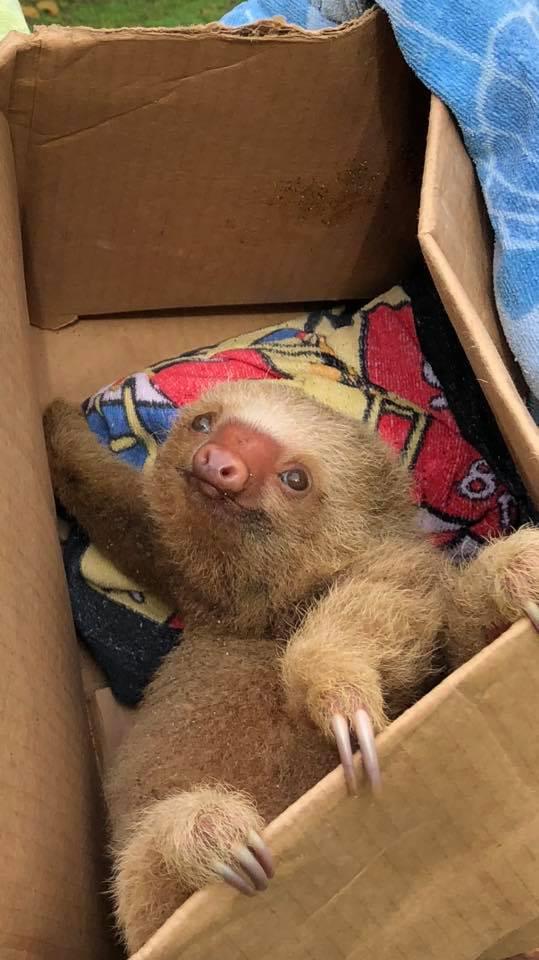 «Он был весь мокрый, с песком в глазах. Когда он нас увидел, то начал еще громче плакать. Маленькие ленивцы не могу выжить без родителей. Мы помыли его, высушили и приготовили для него коробку», — рассказал спасатель.