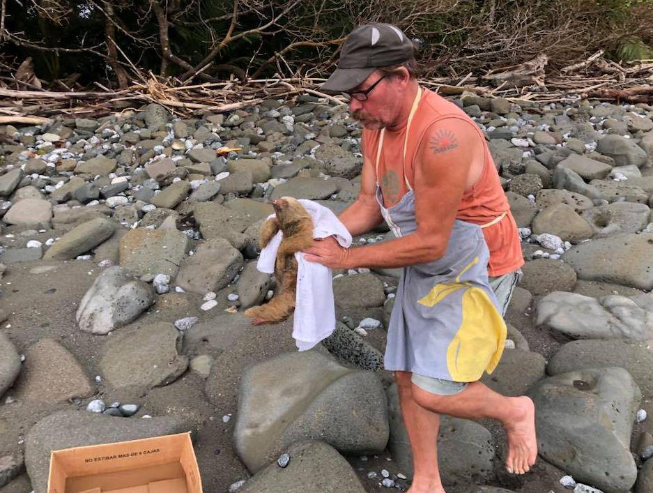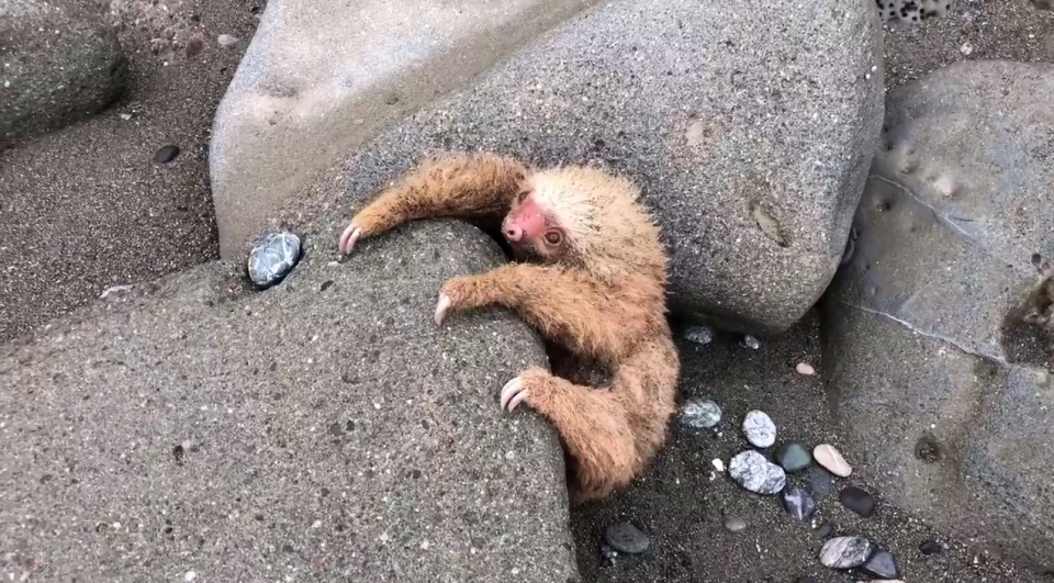 Этот крошечный ленивец после шторма застрял между скал. Его чудом спасли
