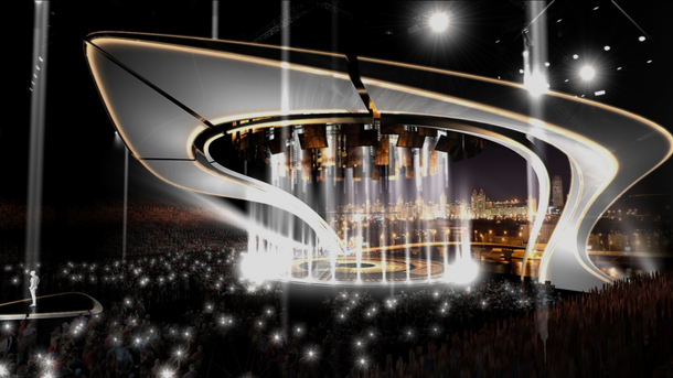 Организаторы отмечают, что такая форма символизирует Украину, которая станет на время проведения конкурса центром Европы. Также сцена позволит болельщикам быть как можно ближе к исполнителям.