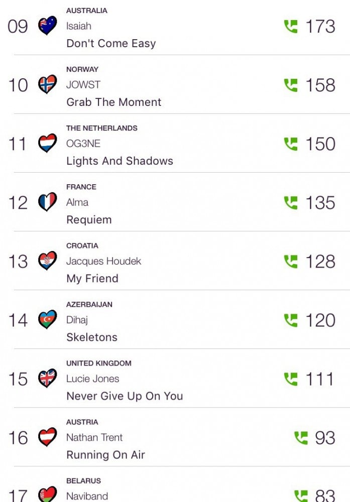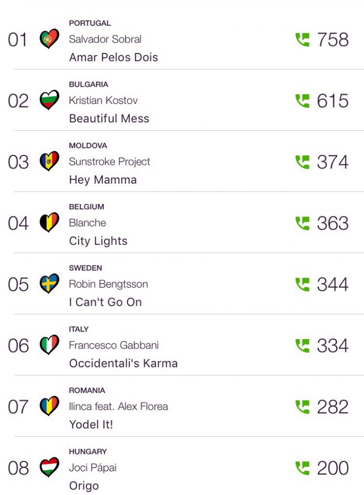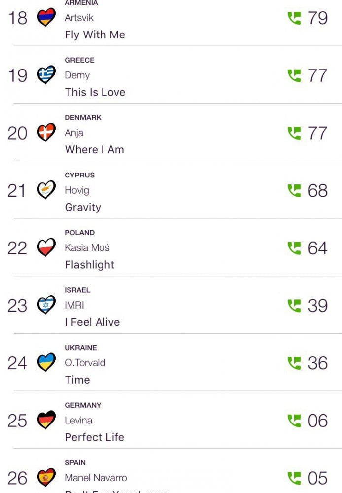 Украинская группа O.Torvald заняла 24 место. В следующем году Евровидение 2018 состоится в Португалии.