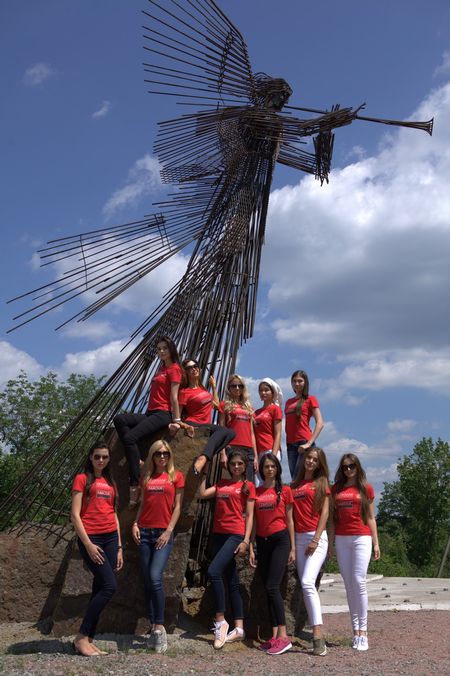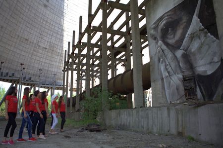 Кроме ознакомления с территорией, девушкам сделали фотосессию. В частности, конкурсантки позировали на фоне мурала, нарисованного на одной из стен огромной охлаждающей башни 5-го недостроенного реактора ЧАЭС.