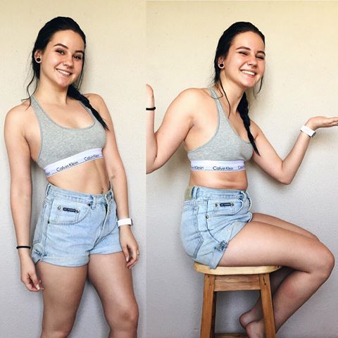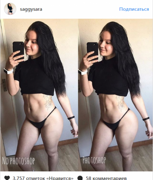 20-летняя Сара опубликовала серию коллажей, где на одном снимке она позирует так, чтобы подчеркнуть все достоинства фигуры, а на другом становится так, чтобы фигура была искажена.