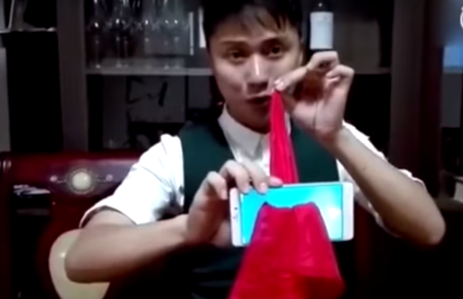 Обычный официант опубликовал в социальной сети видео, в котором он пропускает красный платок сквозь экран смартфона. И делается это не за счёт дырки в гаджете и не благодаря компьютерной графике.