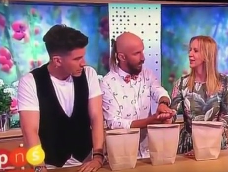Мужчина поставил перед девушкой три пакета и попросил ее хлопнуть ладонью по одному из них, заверив, что это совершенно безопасно. Ошибка горе-мага стояла телеведущей здоровья.
