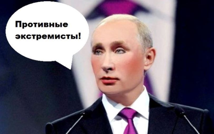 Путин с макияжем- экстремизм.) вот когда будет прямая линия и он будет там с румянами и пудрой, всем надо написать заявление об экстремизме