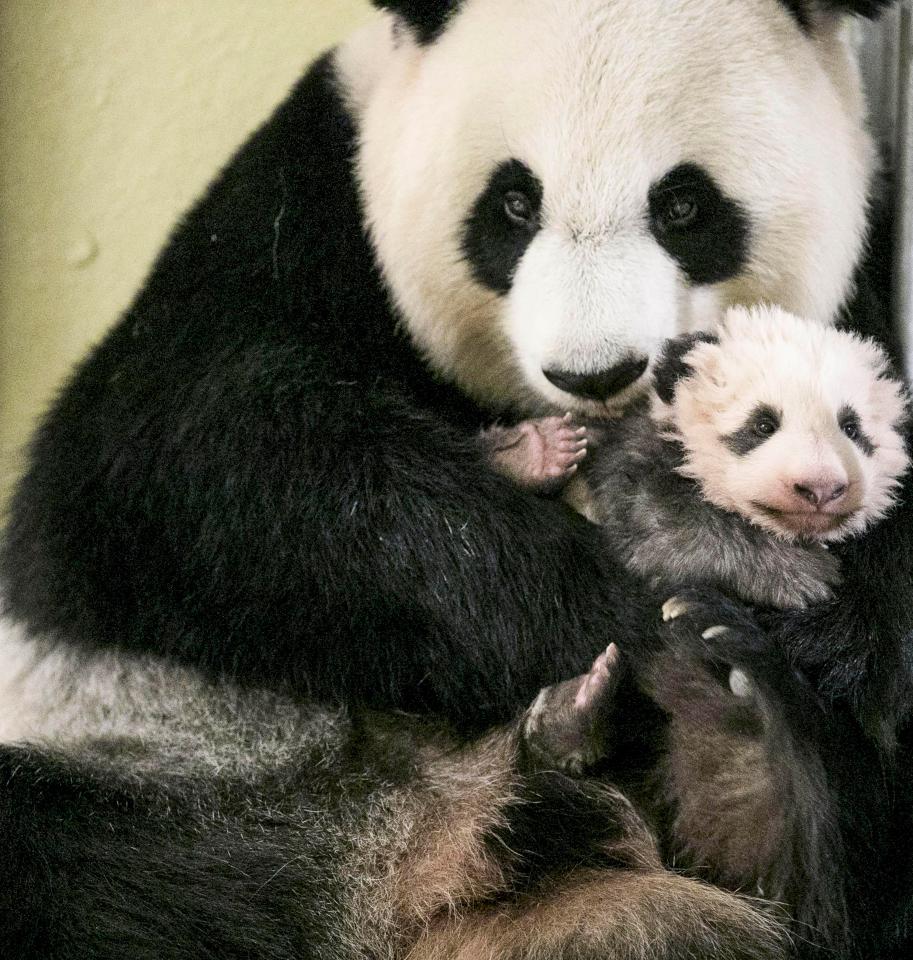 Назвали животное в честь его папы- большой панды Ян Зи. У пандочки уже появились первые зубки и она их с удовольствием показывает, улыбаясь на камеру.