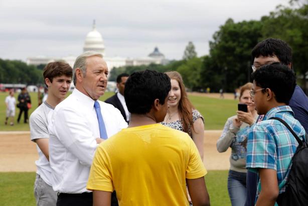 Соуза следовал по вашингтонским локациям снимая главного героя — главу государства Фрэнка Андервуда, роль которого исполняет актер Кевин Спейси.