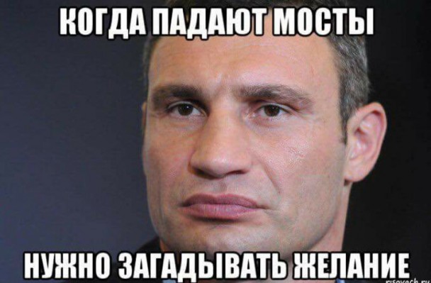 В связи с частичным обвалом моста на Шулявке в Киеве в социальных сетях появилось множество фотожаб и карикатур на столичную власть. Таким образом люди высмеивают бездействие чиновников. Главным объектом насмешек стал мэр Виталий Кличко, который сказал, что «мост упал потому что устал». Наиболее оригинальные фотожабы мы собрали в этой подборке: