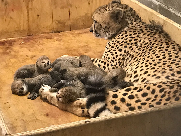 4-летний гепард Бинва из Сент-Луисского зоопарка недавно родила восемь прелестных малышей и автоматически стала рекордсменкой. Впрочем, ее имя переводится как «чемпионка» и она его вполне оправдала.