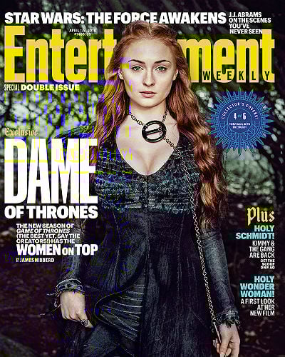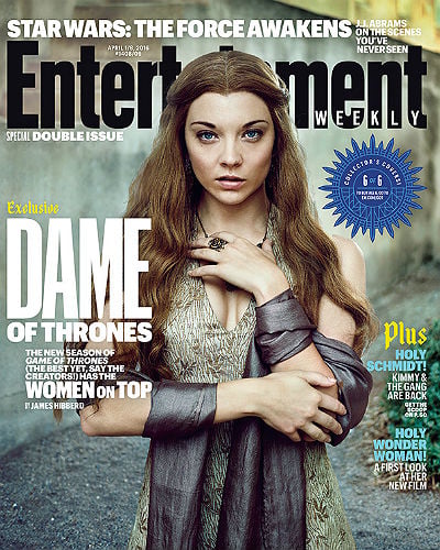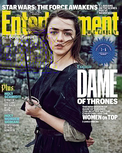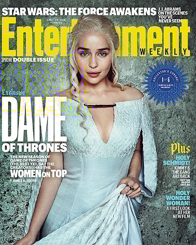 Перед выходом на экране шестого сезона сериала «Игра престолов» популярное издание Entertainment Weelky представило на радость поклонникам спецвыпуск издания с шестью различными обложками, где красуются главные герои киноэпопеи. Также внутри можно найти красочную тематическую фотосессию с женщинами-воительницами и представительницами славных династий.