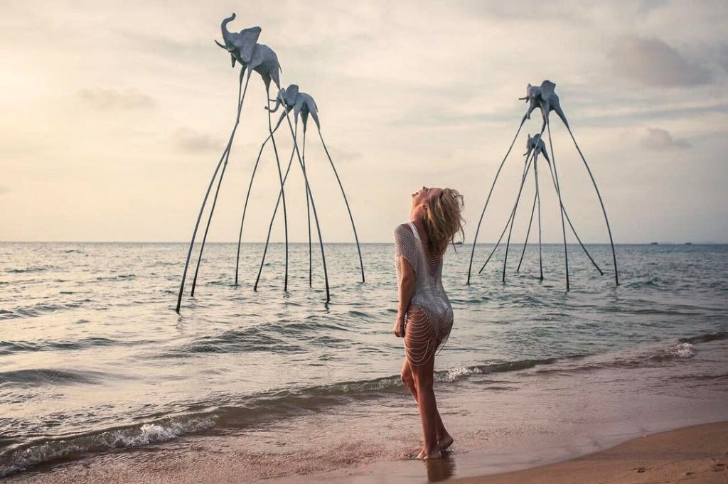 На эту фотосессию певицу вдохновил дизайн пляжа и рекреационной зоны. «То, что тут сотворили ребята, невозможно описать, это надо видеть! Тут построили город на песке, с невероятными инсталляциями и, конечно, музыкой… без нее мы никуда», – восхищается Глюкоза.