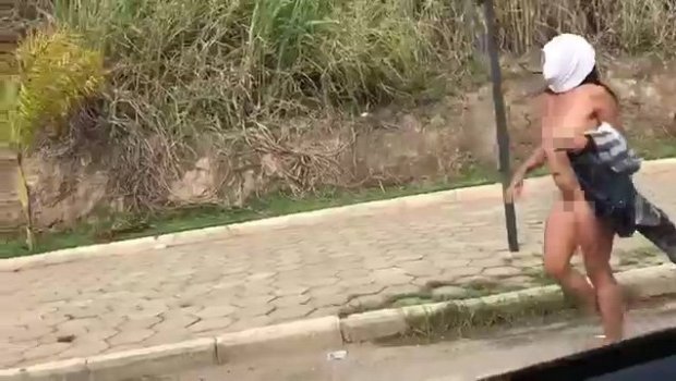 В бразильском Маньюасу водители авто сняли на камеру на видео, на котором видно голую девушку на проезжей части с юбкой на голове.