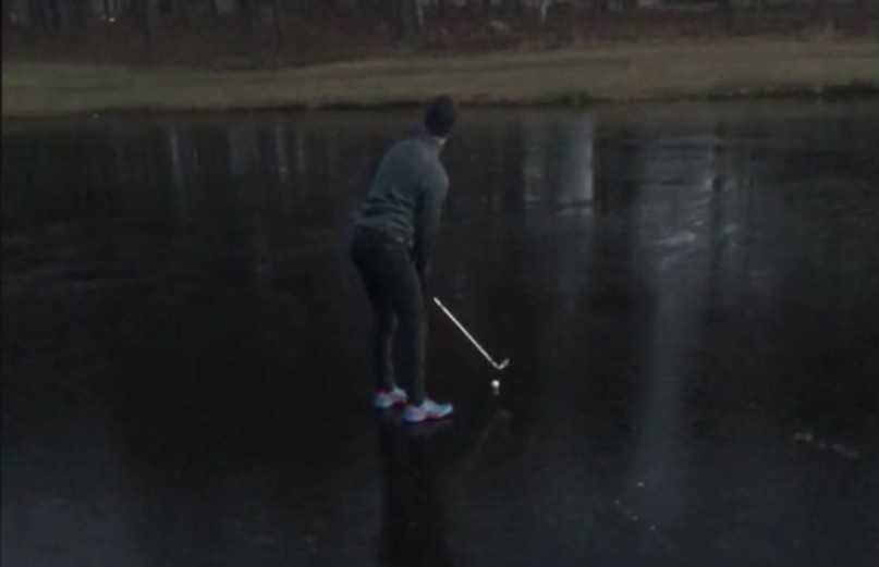 Вирусную популярность в сети приобрело видео, на котором игрок в гольф делает удар, стоя на замёрзшем озере. Сильно размахнувшись, он промахнулся по мячу, попав клюшкой по льду и поскользнувшись. Что было потом – вызвало одновременно испуг и улыбку пользователей соцсетей.