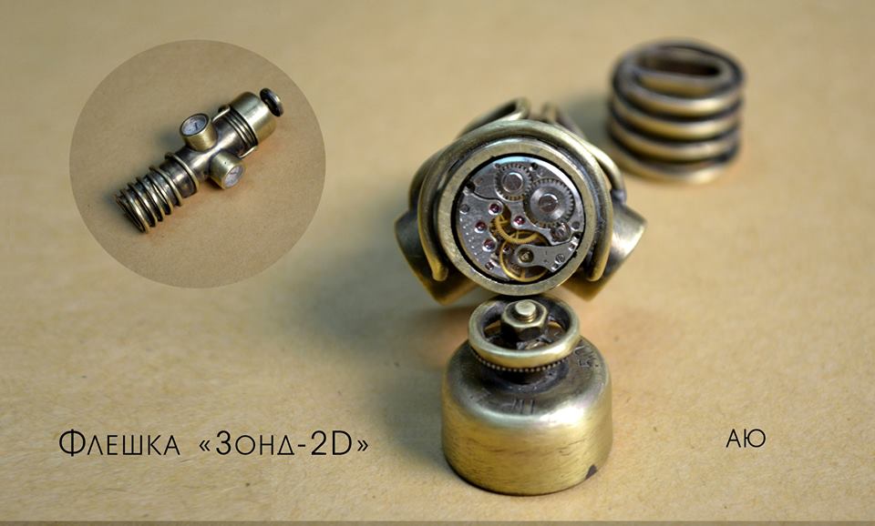 Херсонский художник и режиссер Александр Юдин делает из деталек старых немецких холодильников оригинальные украшения в стиле стимпанк. Это не только подвески и кольца, но и бесспорно уникальные флэш-карты.